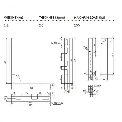 JUST 81104 - 81105 - 81106 - 881108 Svoris 2,8 kg. Storis 2,0 mm. Maksimali apkrova - 200 kg.